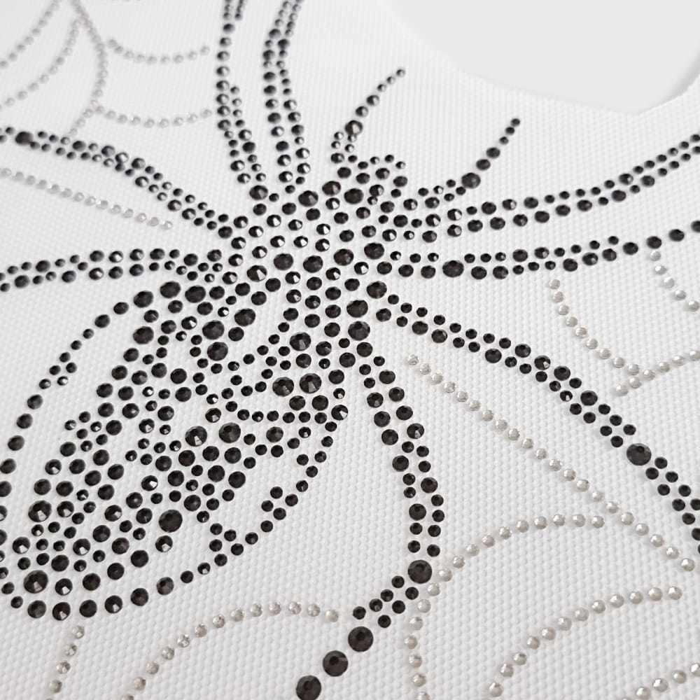 Czarny, duży pająk, ułożony z czarnych, błyszczących cyrkonii w aż 3 rozmiarach - 2, 3 i 4 mm! Do tego delikatna, krystaliczna pajęczyna w tle - tak właśnie wyobrażamy sobie motyw dżetowy, który przyciągnie uwagę wszystkich dookoła. Cyrkonie o charakterystycznym szlifie, imitującym kamienie naturalne to delikatnie błyszczące ozdoby, które potrafią odmienić każdą stylizację. Ich naklejenie jest naprawdę proste i jedyne co potrzebujecie do ich aplikacji to żelazko - instrukcję znajdziecie poniżej: