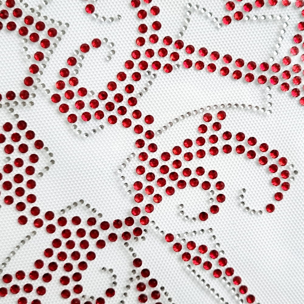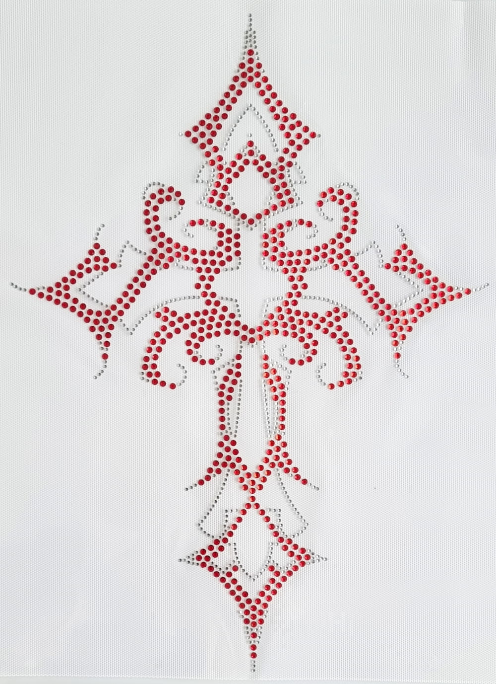 Naprasowanka na odzież z cyrkoniami - Duży krzyż srebrno-czerwony 28 x 38,3 cm