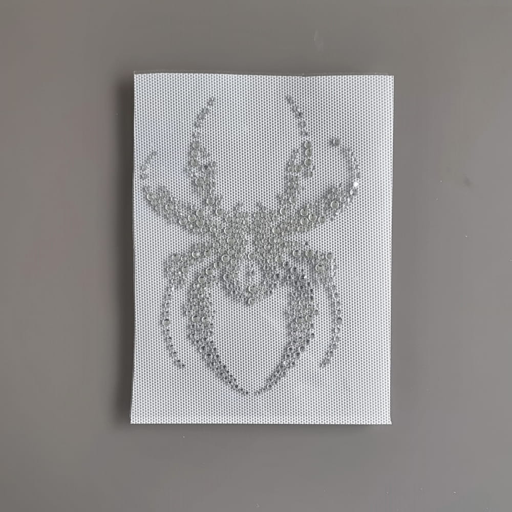 Kolejny pająk w naszej ofercie! Tym razem proponujemy Wam wzorek z przezroczystych kryształków w aż 3 rożnych wielkościach - 2, 3 i 4 mm! Możecie go z łatwością przykleić na bluzy, koszulki lub kurtki - będzie przepięknie mienił się zarówno na czarnych jak i na jasnych ubraniach. Pamiętajcie że jedyne co potrzebujecie do jego naklejenia to żelazko i chwila wolnego czasu - to naprawę bardzo proste. Poniżej oczywiście znajdziecie instrukcję wklejania naszych motywów:
