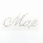 Duży, ozdobny napis "Mąż" ułożony z przezroczystych cyrkonii. Nasz napis idealnie ozdobi zarówno odzież (bo może będziecie chcieli zrobić śmieszną koszulkę z kryształkami dla Państwa Młodych), ale także wszelkie akcesoria ślubne - ozdobne dywaniki, ścianki, pokrowce na krzesełka i wiele innych. Czy wiecie, że nasze kamienie można nawet wklejać na papier i drewno? Pomyślcie tylko jakie cudeńka możecie wykonać z naszymi ozdobami z cyrkonii!