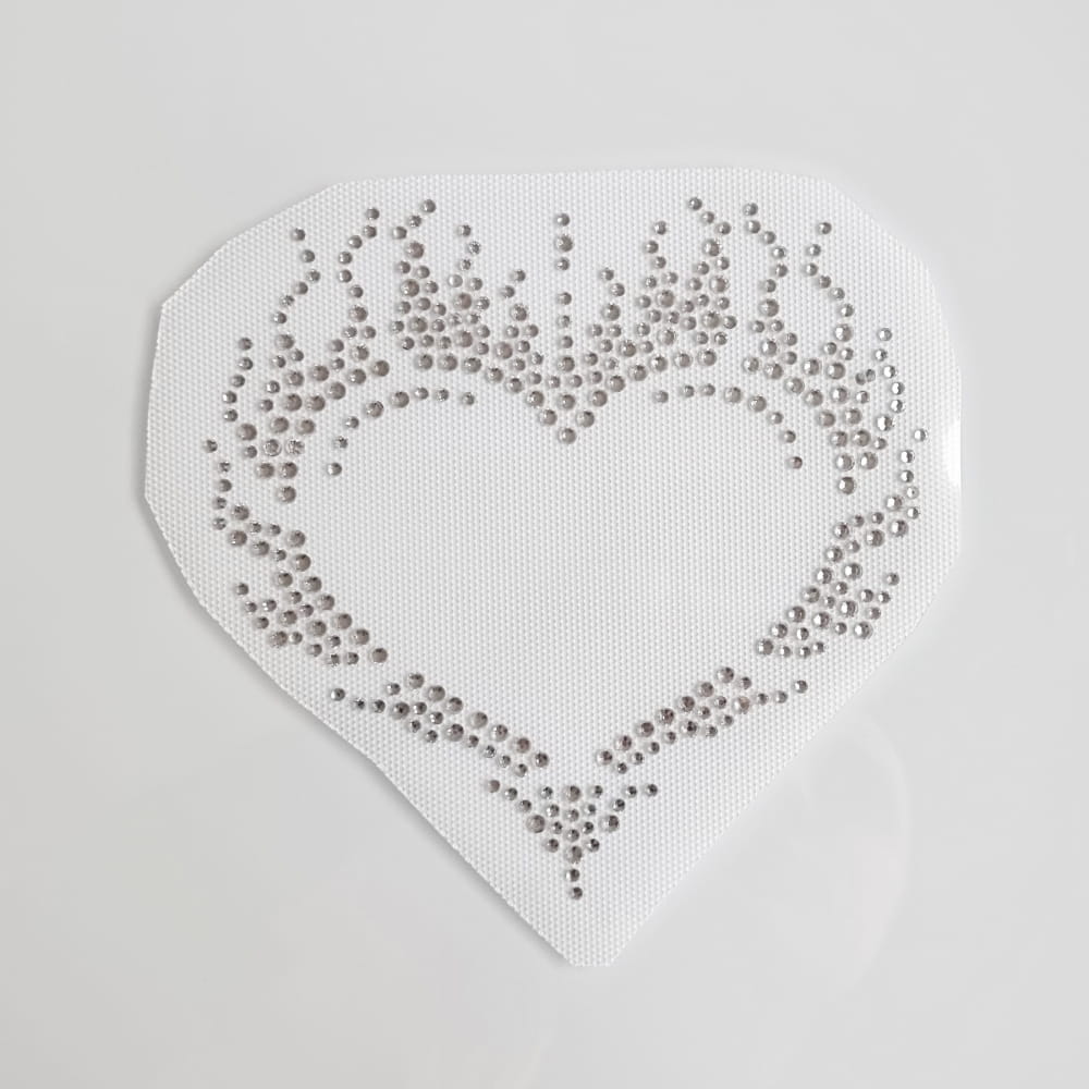 Jednym z najbardziej poszukiwanych i lubianych przez Was motywów dżetowych są te, które mają kształt serca. Dlatego postanowiliśmy poszerzyć naszą sklepowa ofertę o cyrkoniowe serce, które wygląda jakby było całe w płomieniach. Naszą wklejkę ułożyliśmy z przezroczystych kamyków - 3 i 4 mm, które będą przepięknie mienić się w słońcu lub delikatnym świetle. Możecie ją nakleić na koszulki, bluzki czy choćby jeansowe kurtki - sami zdecydujcie gdzie.