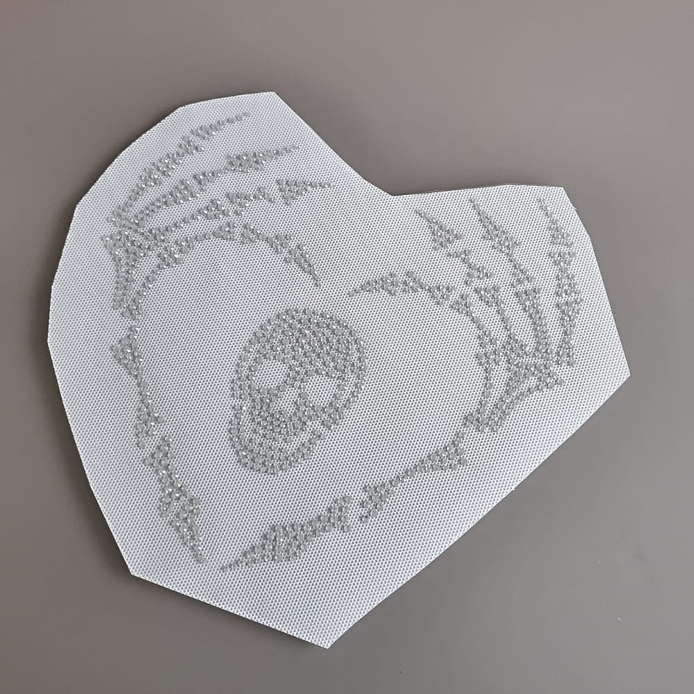 Serduszko utworzone z kościstych, trupich dłoni, a w środku czaszka - do tego wszystko ułożone z przezroczystych cyrkonii. Nasz najnowszy motyw to kolejna propozycja z serii "kości i kościotrupów". Możecie go z łatwością wkleić na bluzy, koszulki czy jeansowe kurtki. Jedyne czego potrzebujecie to żelazko i chwila wolnego czasu. Przekonajcie się sami jakie to łatwe czytając naszą poniższą instrukcję: