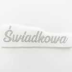 Kolejna propozycja wzoru na wieczór panieński (i nie tylko). Chcesz wyróżnić się podczas tego niezapomnianego wieczoru i pokazać, że ty będziesz świadkową? A może chcesz zrobić prezent swojej świadkowej? Zabłyśnij z naszym pięknym, krystalicznym napisem! Możesz go samodzielnie wkleić na odzież lub zlecić to nam. W naszej ofercie znajdziecie również inne napisy z serii ślubnej - możecie nawet zamóiwć gotowe koszulki!