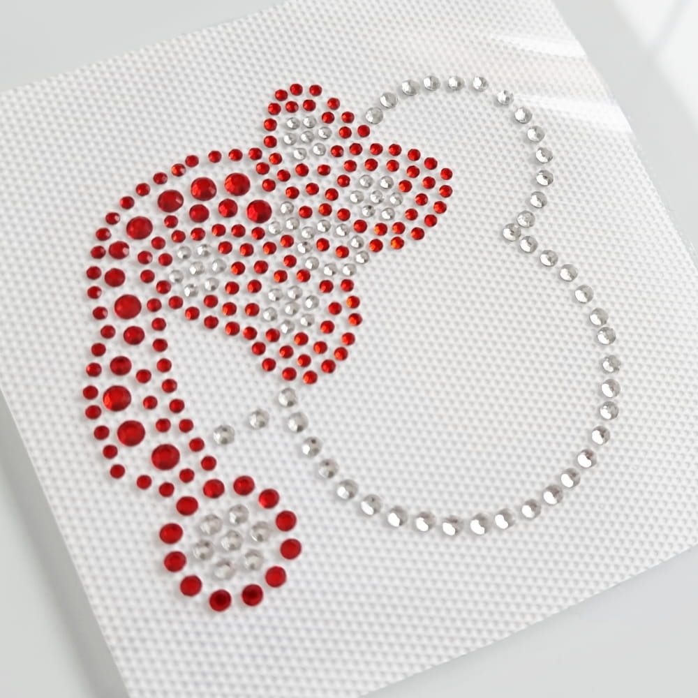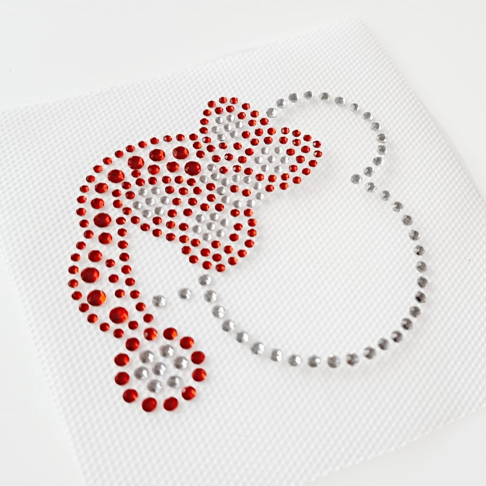 Jeżeli szukacie pomysłu na ozdobę nie tylko typowo świąteczną, ale również zimową (taką, którą możecie nosić przez cały zimowy sezon) to nasza myszka, w czerwonej czapce to coś dla Was. Wzór został ułożony z przezroczystych i czerwonych cyrkonii w różnej wielkości, które przepięknie błyszczą się nawet w delikatnym świetle. Kolorystyka będzie pasowała do każdego koloru materiału i na każdym przepięknie się wybije.