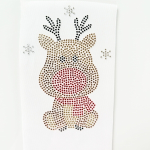 Naprasowanka na odzież z cyrkoniami - Wesoły renifer 10,7 x 15,4 cm