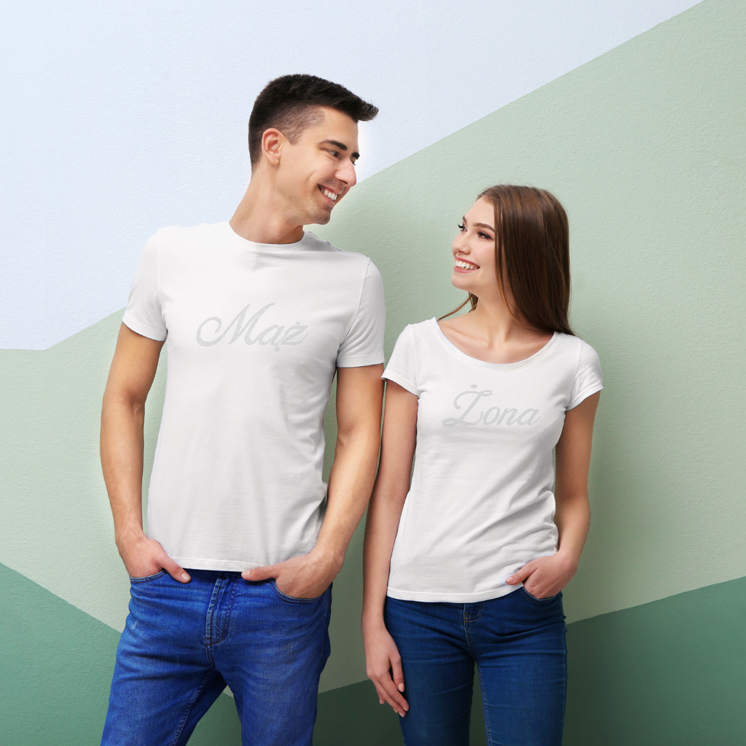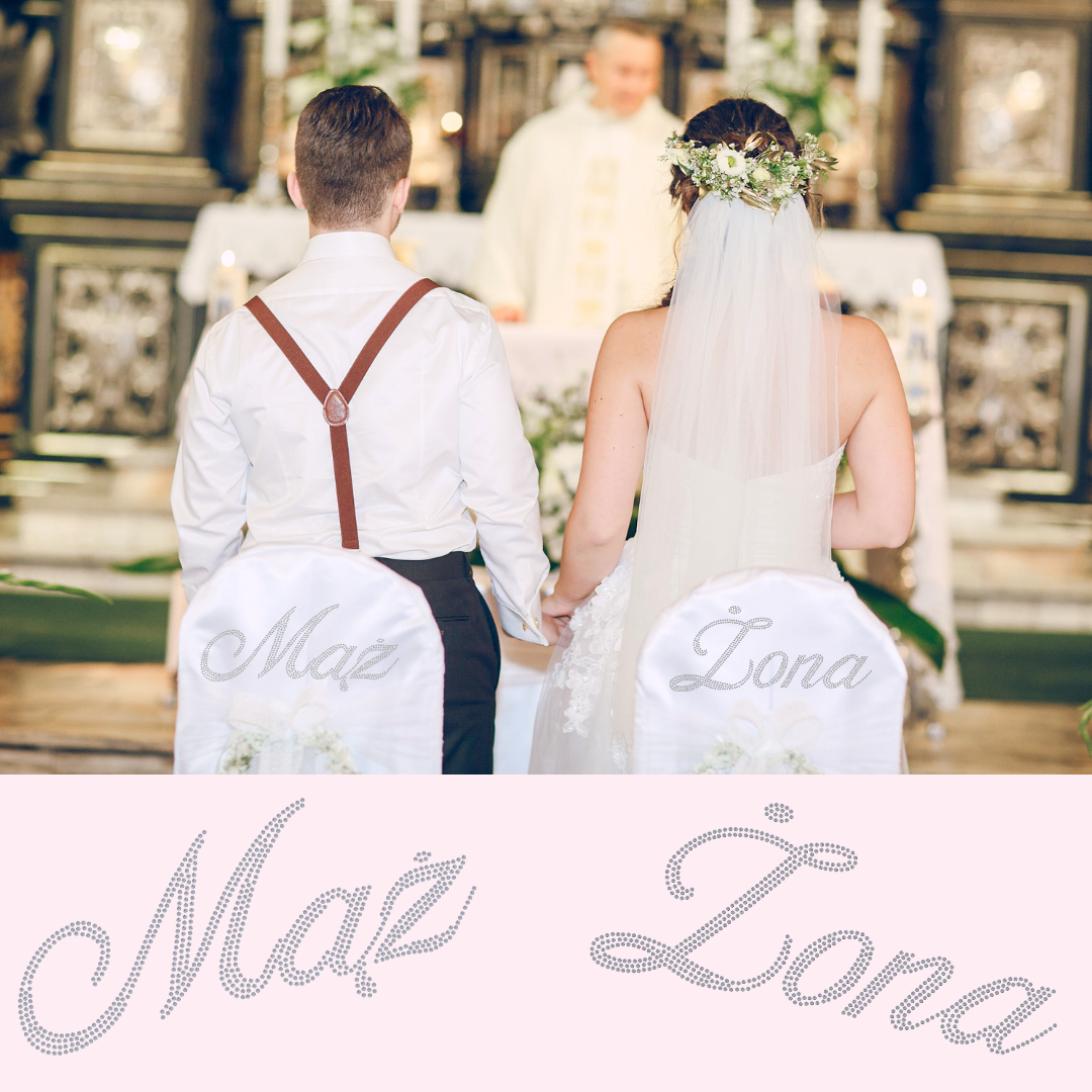 Duży, ozdobny napis "Żona" ułożony z przezroczystych cyrkonii. Nasz napis idealnie ozdobi zarówno odzież (bo może będziecie chcieli zrobić uroczą koszulkę z kryształkami dla Państwa Młodych), ale także wszelkie akcesoria ślubne - ozdobne dywaniki, ścianki, pokrowce na krzesełka i wiele innych. Czy wiecie, że nasze kamienie można nawet wklejać na papier i drewno? Pomyślcie tylko jakie cudeńka możecie wykonać z naszymi ozdobami z cyrkonii!