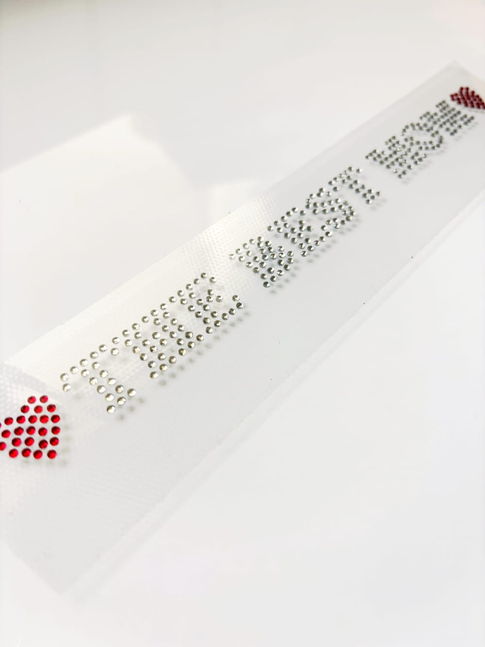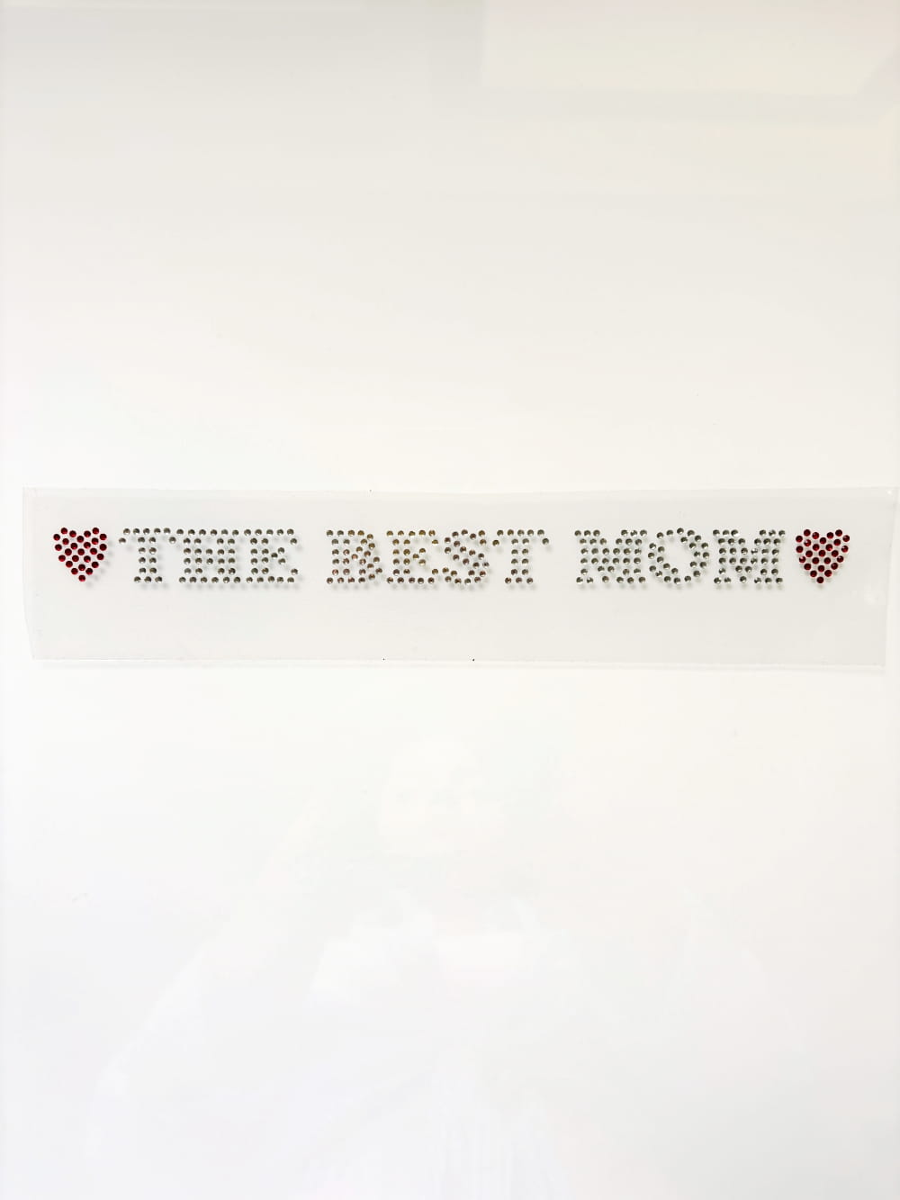 Naprasowanka na odzież z cyrkoniami - napis the best mom z czerwonymi sercami 22cm x 1,5 cm