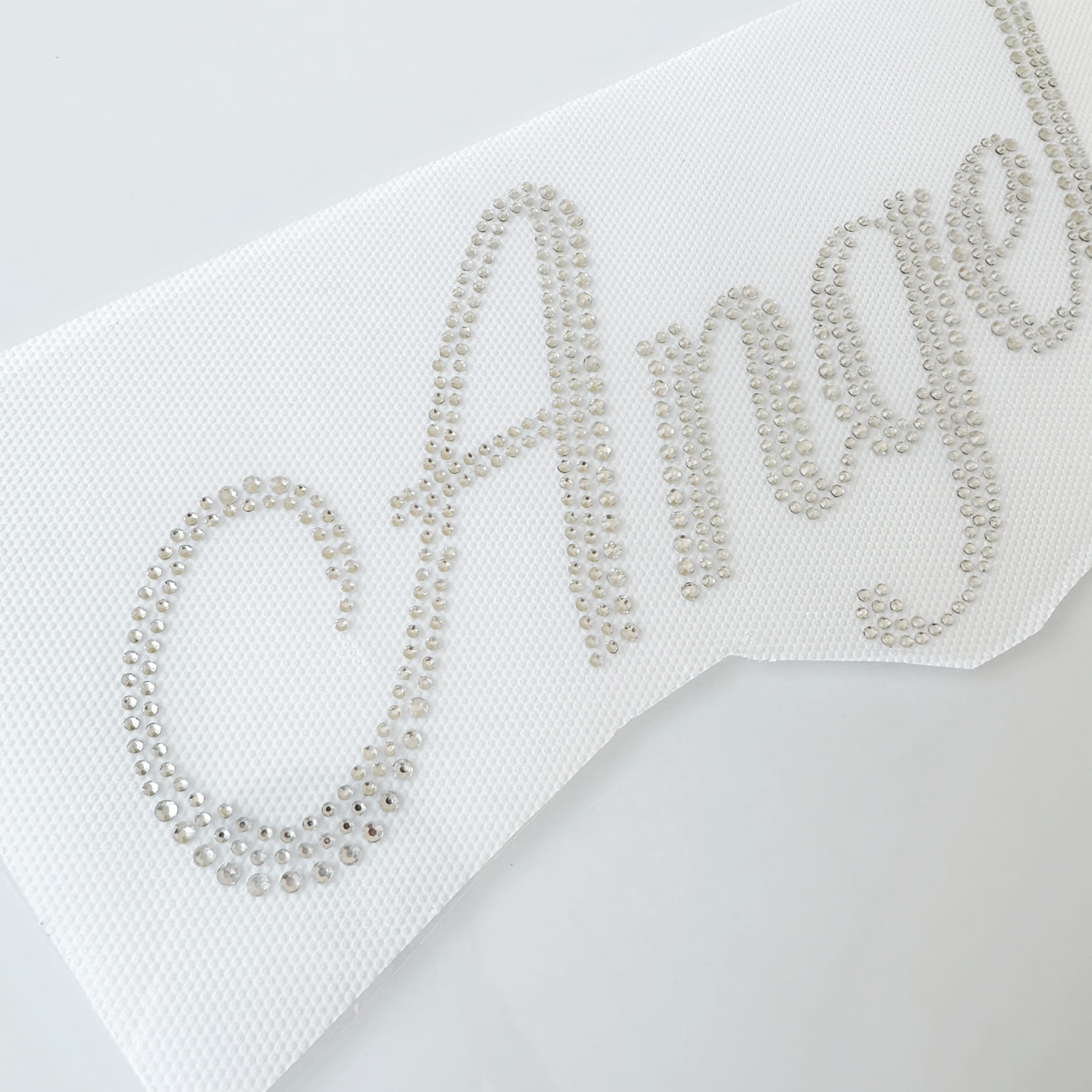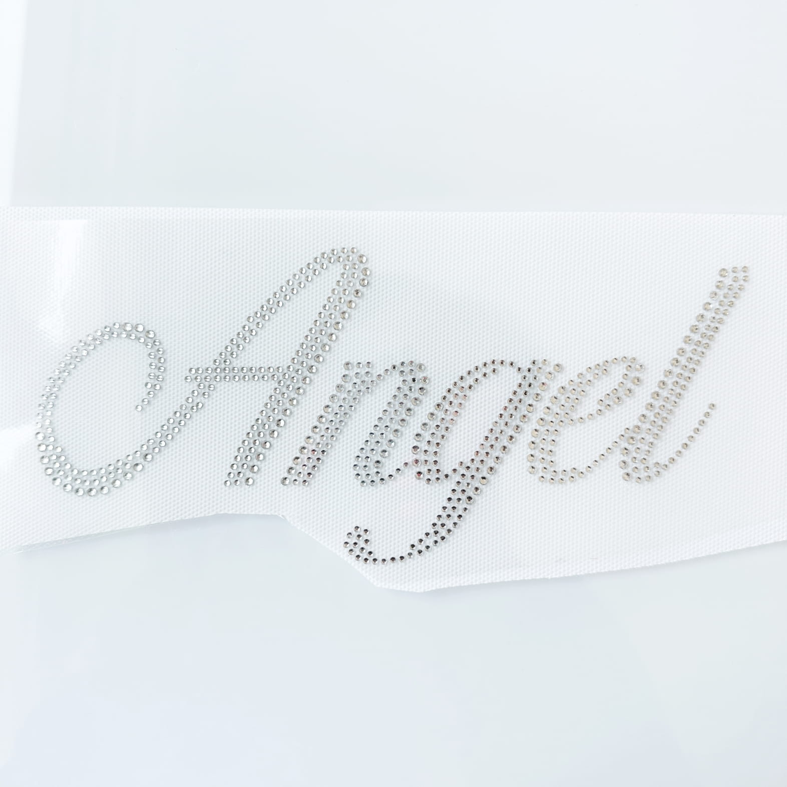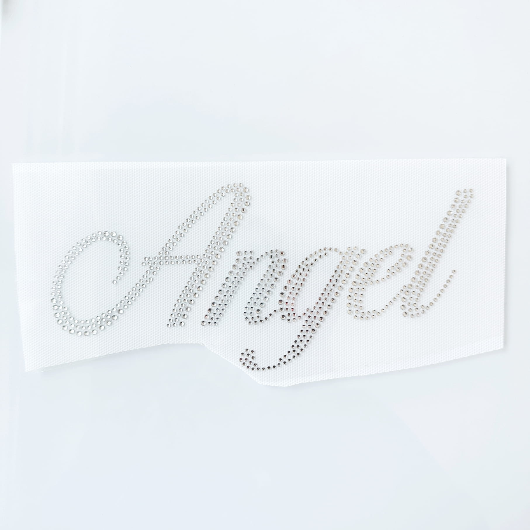 Naprasowanka na odzież z cyrkoniami - napis z kryształków Angel, 22 x 9,7 cm