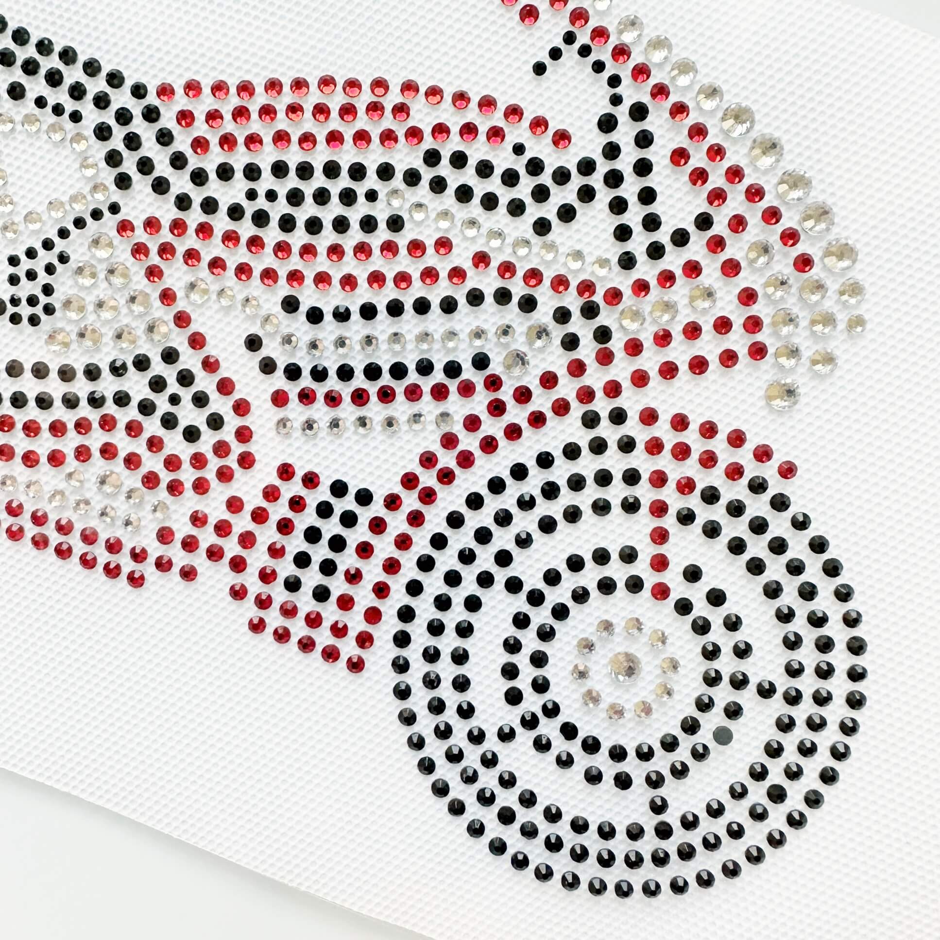 Tym razem przygotowaliśmy dla Was naprasowankę w kształcie ścigacza, ale nie byle jaką - ten motocykl to połączenie błyszczących cyrkonii w odcieniu czerwieni, srebra i czerni. Kolorystyka iście sportowa, wystarczy spojrzeć na tą energetyczną czerwień. Nasza wklejka została ułożona z 3 wielkości kamieni, również tych wyższych 4 mm - kamienie dzięki temu przepięknie się błyszczą, ale przez to, że są wyższe i grubsze ich wklejenie może ybć trudniejsze - radzimy zdecydowanie dłużej przyprasowywać ten motyw, aby klej na pewno poprawnie się rozpuścił!