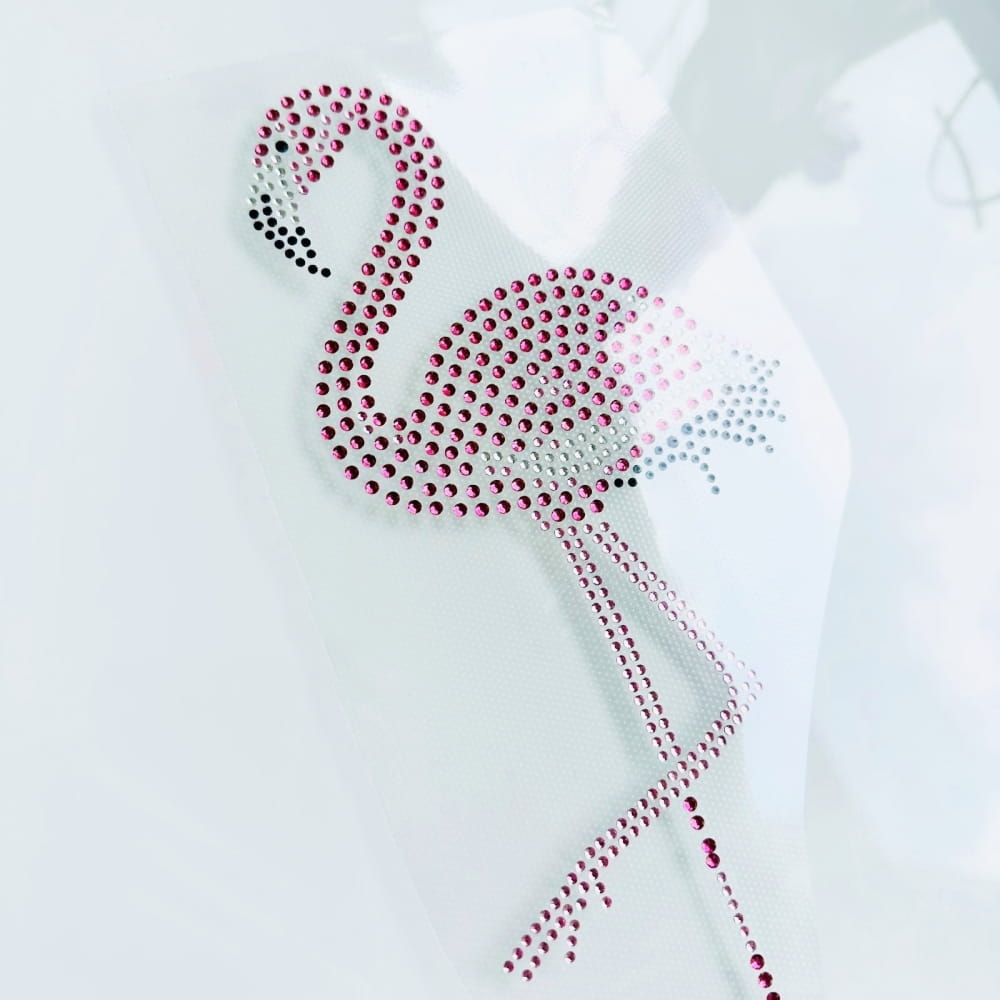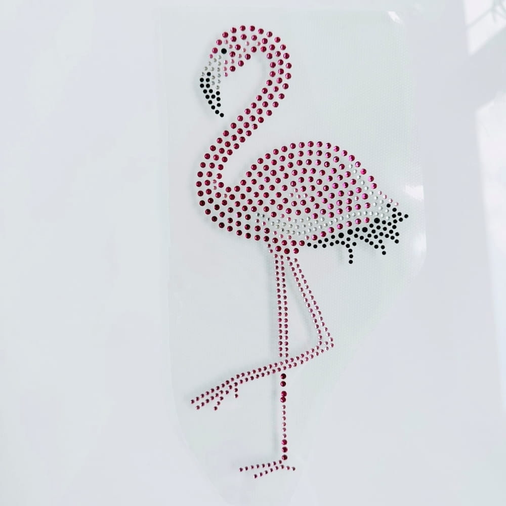 Naprasowanka na odzież z różowymi cyrkoniami - Flaming 21,3 x 10,1 cm