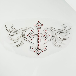 Tym razem mamy dla Was motyw ułożony z krystalicznych cyrkonii połączonych z delikatną czerwienią. Nasza nowa wklejka przedstawia krzyż ze skrzydłami - wszystko utrzymane w srebrnej kolorystyce i tylko w kilku miejscach dodaliśmy mocniejsze, czerwone akcenty - imitujące rubinowe kamienie. Nasza wklejka idealnie będzie się prezentować na Waszych koszulkach lub bluzach - zarówno na przodzie np. na wysokości klatki piersiowej, jak i na plecach - sami zdecydujcie gdzie chcecie ją nakleić!
