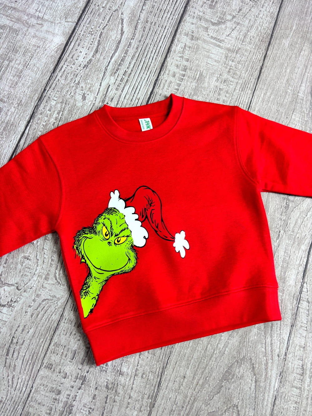 Bluza świąteczna dla dzieci- Mikołaj Grinch bokiem