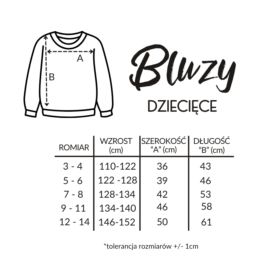 - Skład: 40% bawełna - 60% poliester (nie martwcie się, że w składzie więcej jest poliestru - dzięki temu bluza będzie mniej się peelingować, a także zimą da więcej ciepła Waszym pociechą!)