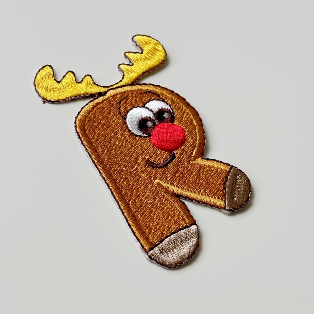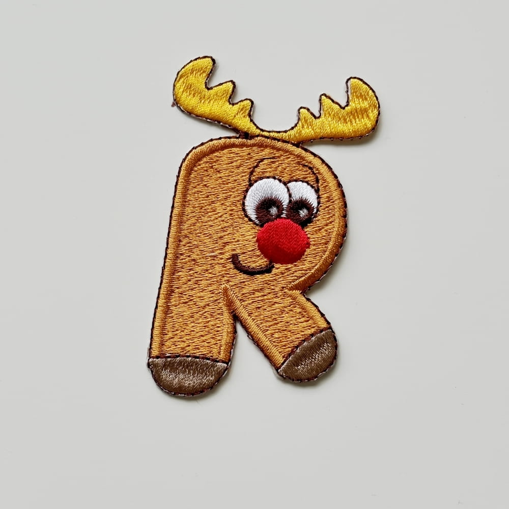 Haftowana naszywka TERMO, naprasowanka dziecięca na ubranie - Literka zwierzątko ''R'' Renifer