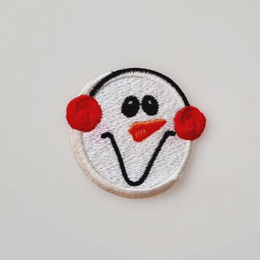 Haftowana naszywka TERMO, naprasowanka na ubranie - Bałwanek z czerwonymi nausznikami 5,5 x 5,3 cm