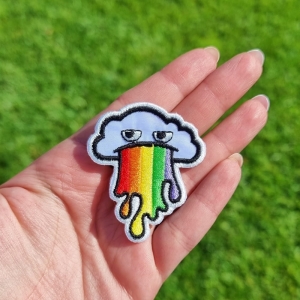 Kolorowa, młodzieżowa naszywka - dość wymowna, przedstawiająca chmurkę, która "wypluwa" tęczę. Jest to nasza propozycja dla nastolatków i dla wszystkich tych, którzy szukają nietypowych aplikacji, którymi pragną wyrazić siebie. Wystarczy wybrać kilka różnych naszywek z naszego sklepu i przykleić je na odzieży, plecaku, torbie albo czapce, aby stworzyć wyjątkowy element garderoby. Koniec ze spotykaniem na ulicy ludzi ubranych dokładnie tak samo jak my, czas wyróżnić się w tłumie!