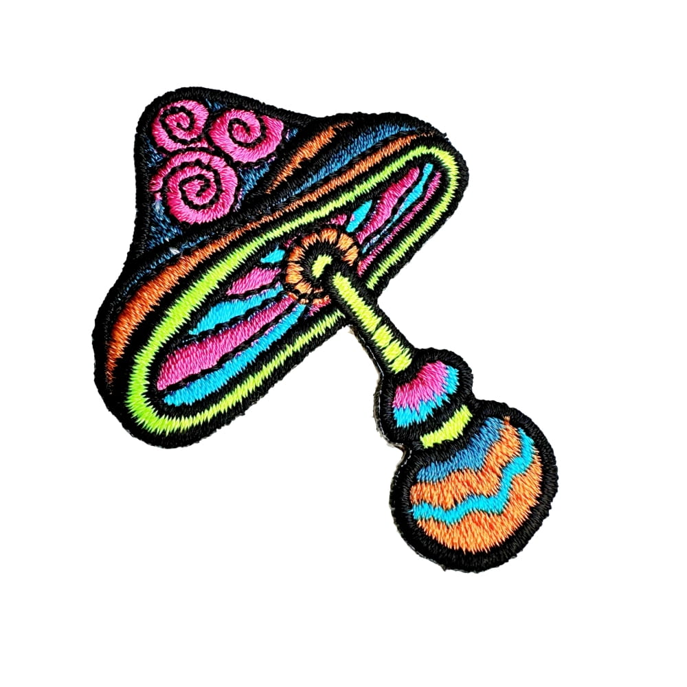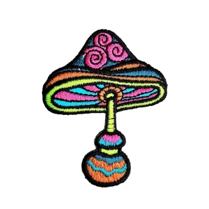 Naszywka w kształcie wykręconego grzybka halucynka w mocnych kolorach różu, pomarańczy, błękitu i neonowego żółtego. Do tego mocne akcenty czerni, która podkreśla nieoczywisty kształt naszej naszywki. Wklejkę (bo naszywka posiada od spodu warstwę termofolii a więc nie musicie jej naszywać, wystarczy ją nakleić żelazkiem) możecie przykleić na koszulki, bluzy, czapki czy plecaki. Poniżej znajdziecie dokładną instrukcję wklejania naszych haftów.