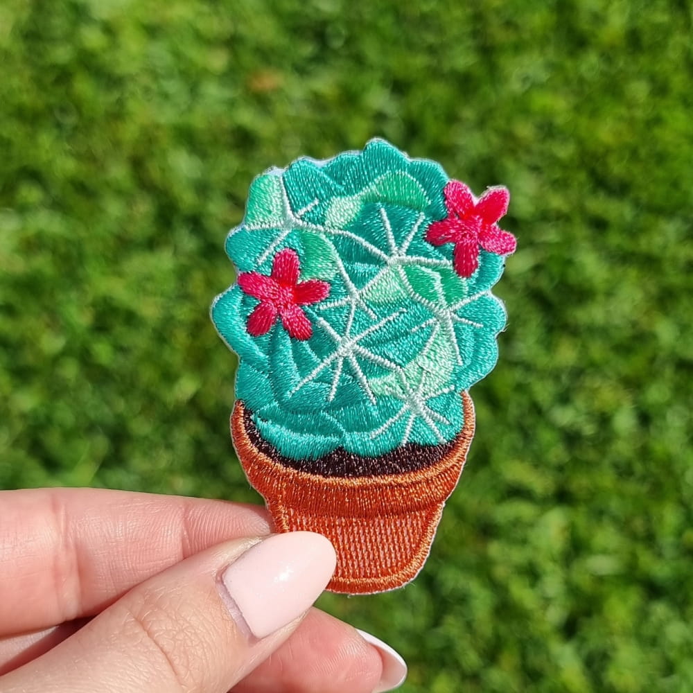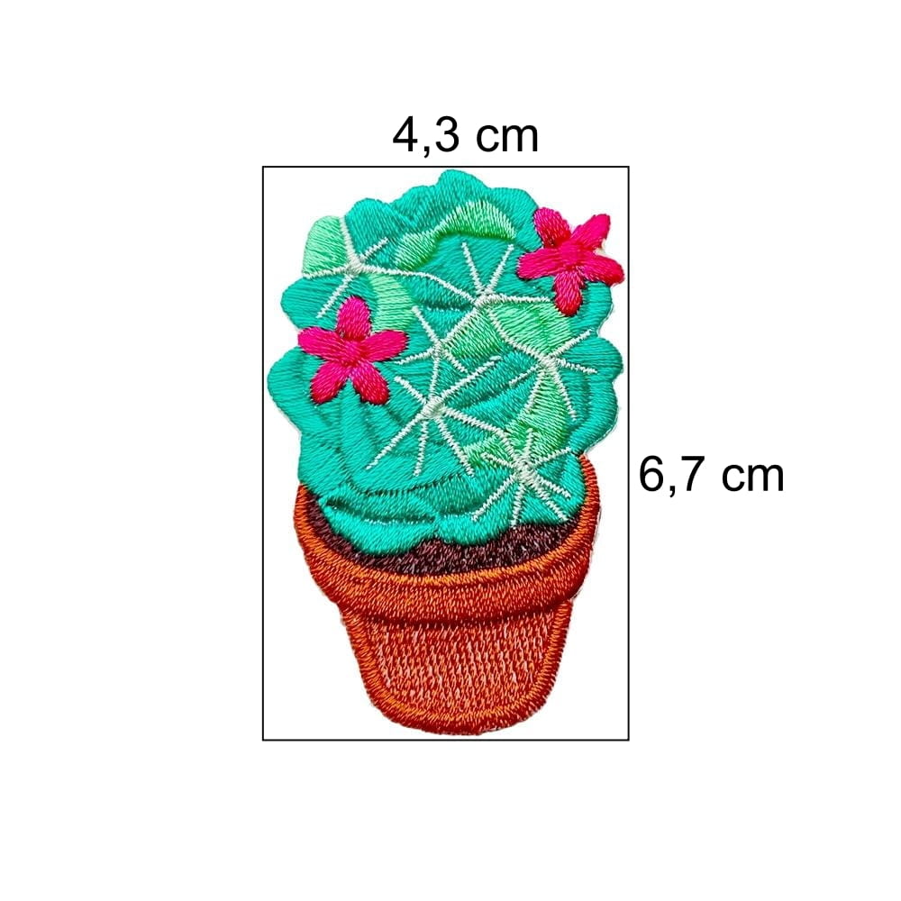 Haftowana naszywka TERMO, naprasowanka na ubranie - Kaktus z kwiatami 4,3 x 6,7 cm