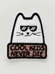 Haftowana naszywka TERMO, naprasowanka na ubranie - Kot "Cool Kids Never Die" 5,5 x 6 cm