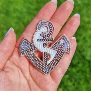 Haftowana naszywka TERMO, naprasowanka na ubranie - Kotwica z cekinów