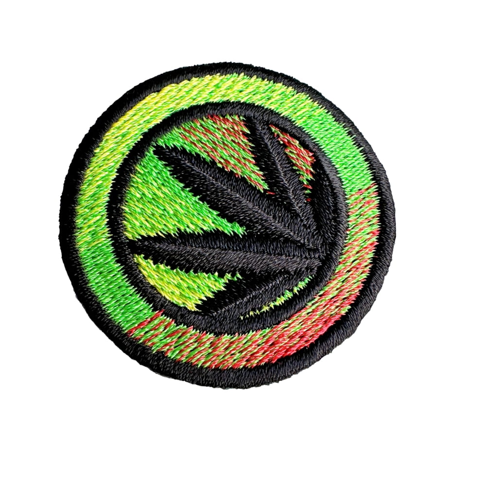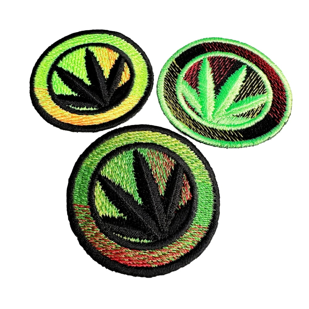 Okrągła naszywka z charakterystycznym liściem konopnym na środku. Do wyboru przygotowaliśmy dla Was jedną z 3 różnych wersji tej samej naszywki. Każda naszywka to połączenie odcieni neonowej zieleni, czerni i czerwieni. Haft został tak przemyślany, że kolory nitek przez siebie przechodzą dając ciekawy efekt przypominający szkice wykonywane kredkami. Każda z naszywek posiada od spodu termofolią, czyli rodzaj kleju, który uaktywnia się pod wpływem temperatury - możecie je nakleić na odzież za pomocą żelazka!