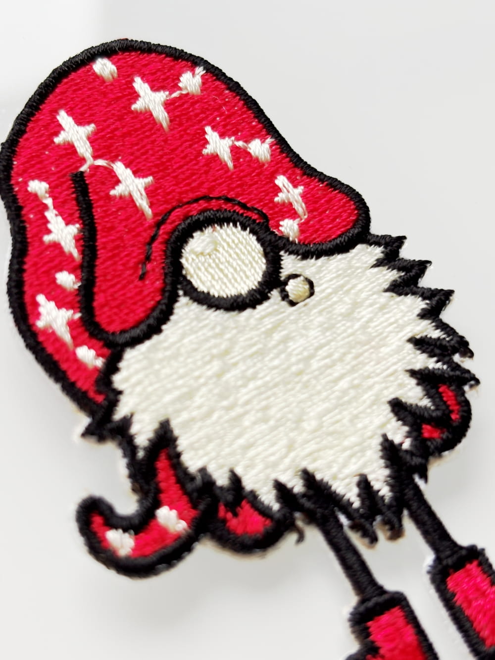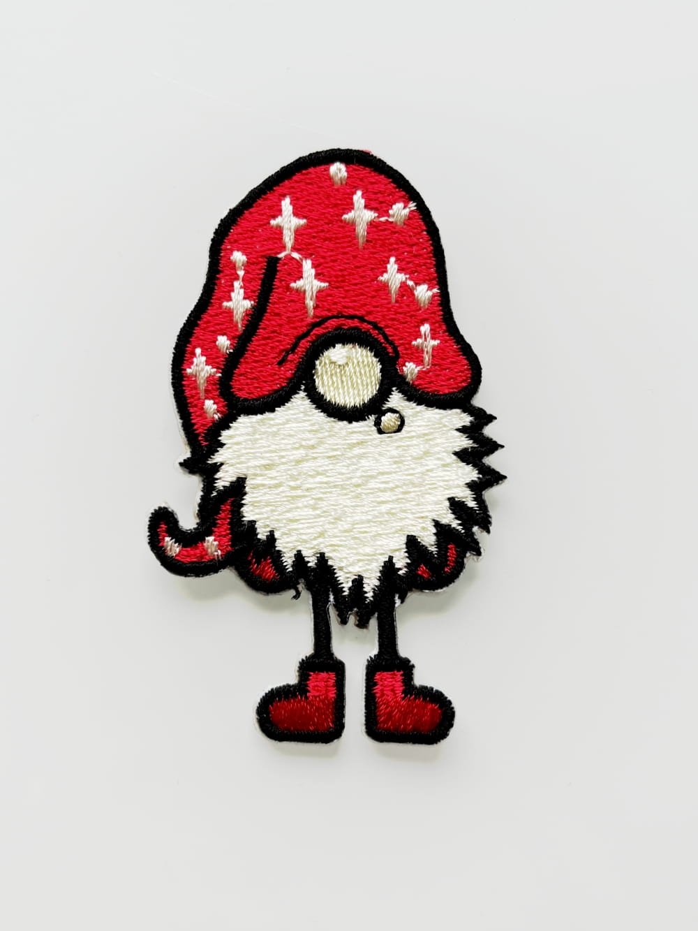 Uroczy świąteczny skrzat z długą czapką w gwiazdki to idealna naszywka, by wprowadzić trochę bożonarodzeniowego klimatu do swojej stylizacji!