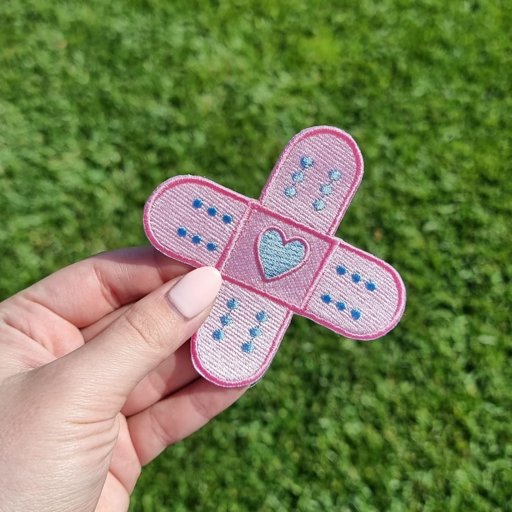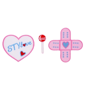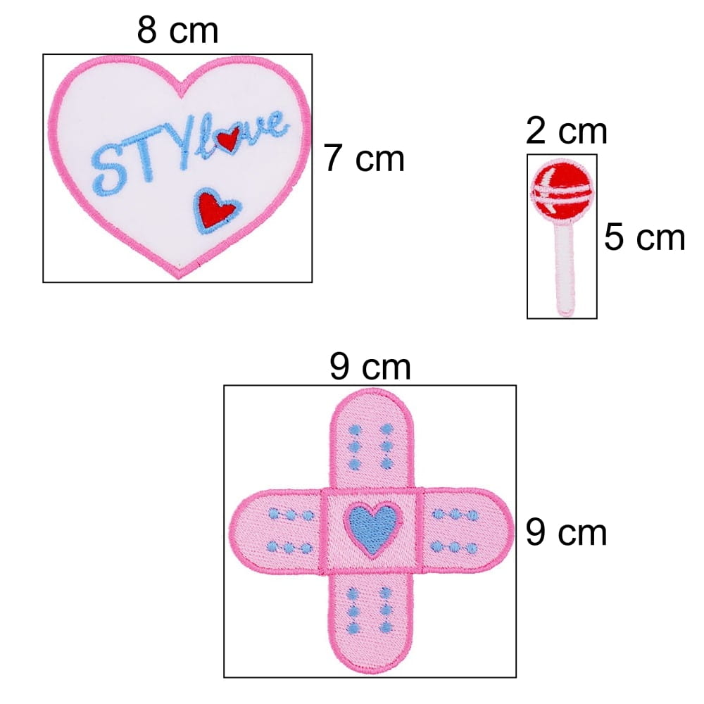 Haftowane naszywki TERMO, zestaw dziecięcych naprasowanek na ubranie - Różowy plaster, lizak i serce