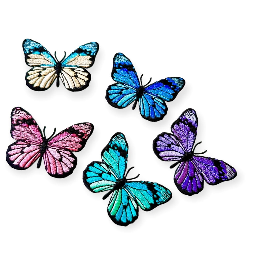 Haftowane naszywki TERMO, zestaw naprasowanek na ubranie - Kolorowe motylki 5 sztuk
