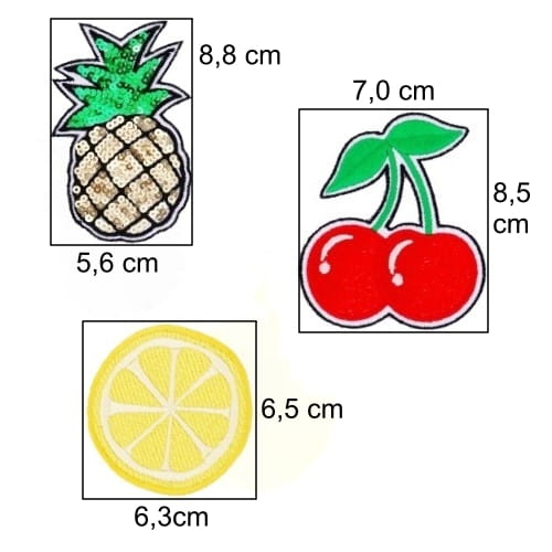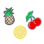 Kolejny zestaw kolorowych, energetycznych naszywek z owocami. Tym razem obok soczystej wiśni i błyszczącego ananasa znalazła się słoneczna cytryna. Zestaw możecie wykorzystać na jednej bluzce lub tunice naklejając wszystkie naszywki obok siebie, albo możecie je nakleić pojedynczo na różnych elementach garderoby tworząc całą stylizację. Wszystko zależy od Was!