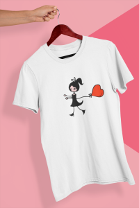 Delikatny, kobiecy wzór z dziewczyną biegnącą za sercem to romantyczna i lekka propozycja dla zakochanych. Minimalistyczna grafika sprawia, że koszulka jest subtelna, ale pełna charakteru. Idealna na Walentynki, rocznicę lub po prostu jako symbol Waszej relacji.