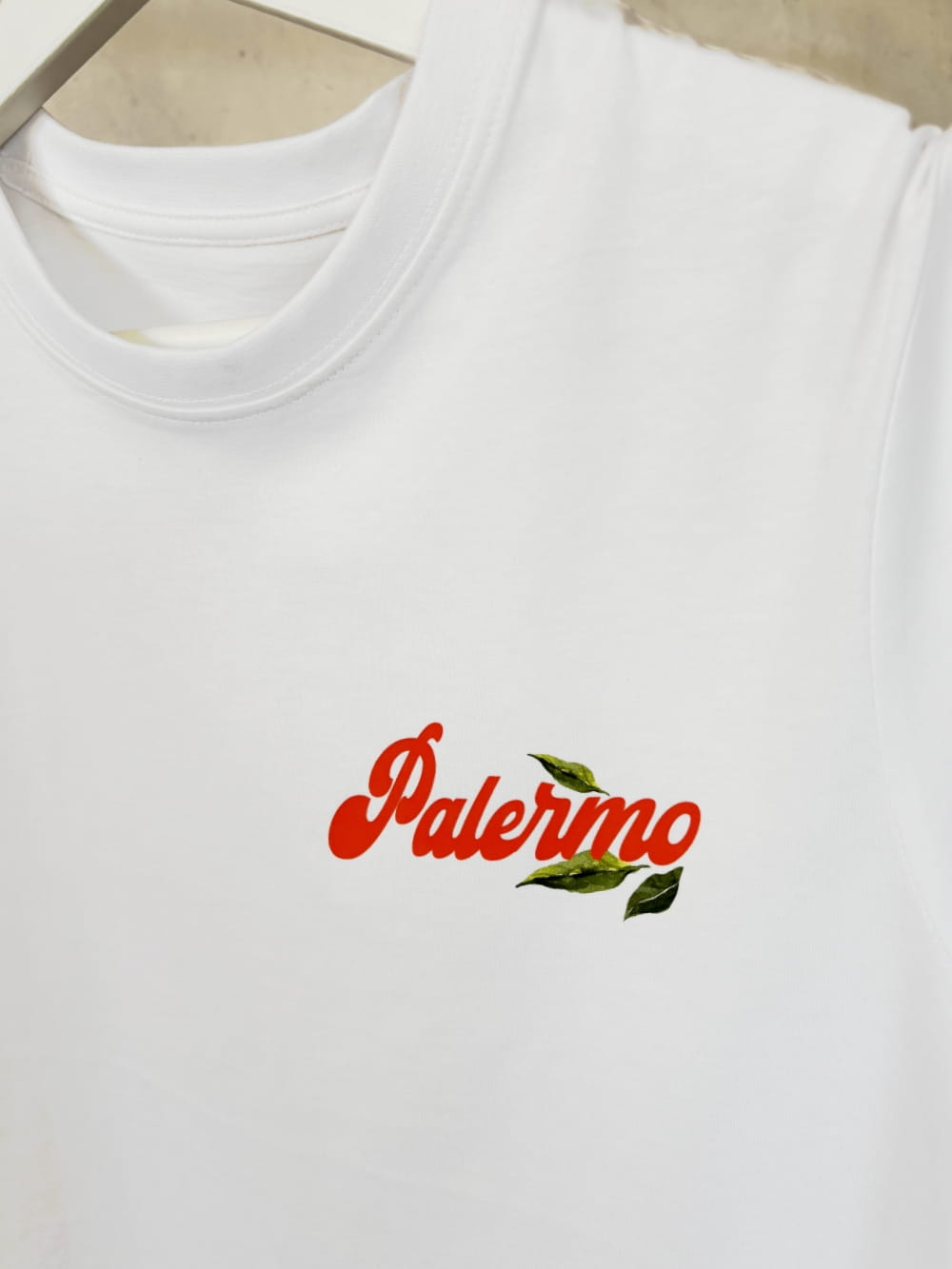 ✅ Minimalistyczny detal z przodu – napis Palermo i liście