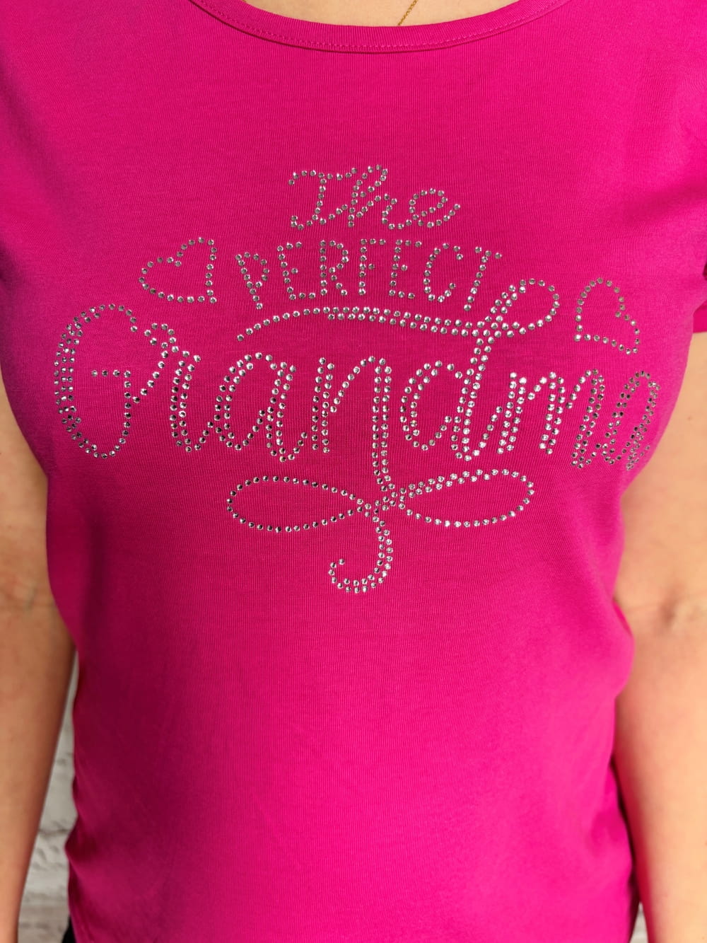 Świętuj Dzień Babci w wielkim stylu z naszą wyjątkową koszulką „The Perfect Grandma”! Ten niezwykły T-shirt jest dostępny w kolorze różowym i czarnym, co pozwala dopasować prezent do stylu każdej babci. Efektowny napis wykonany z mieniących się kryształków to doskonałe połączenie klasyki i nowoczesności.