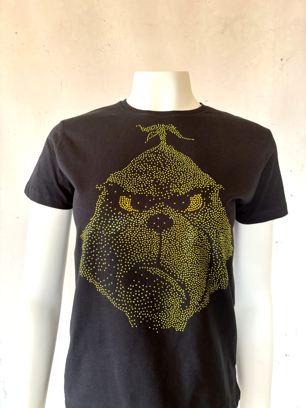 Czas na odrobinę świątecznego humoru i stylu z pazurem! Ta wyjątkowa koszulka unisex ozdobiona została charakterystycznym wizerunkiem Grincha, wykonanym z setek lśniących zielonych kryształków. Idealnie podkreśli Twój oryginalny styl, a jednocześnie doda odrobiny zadziorności do każdej stylizacji.