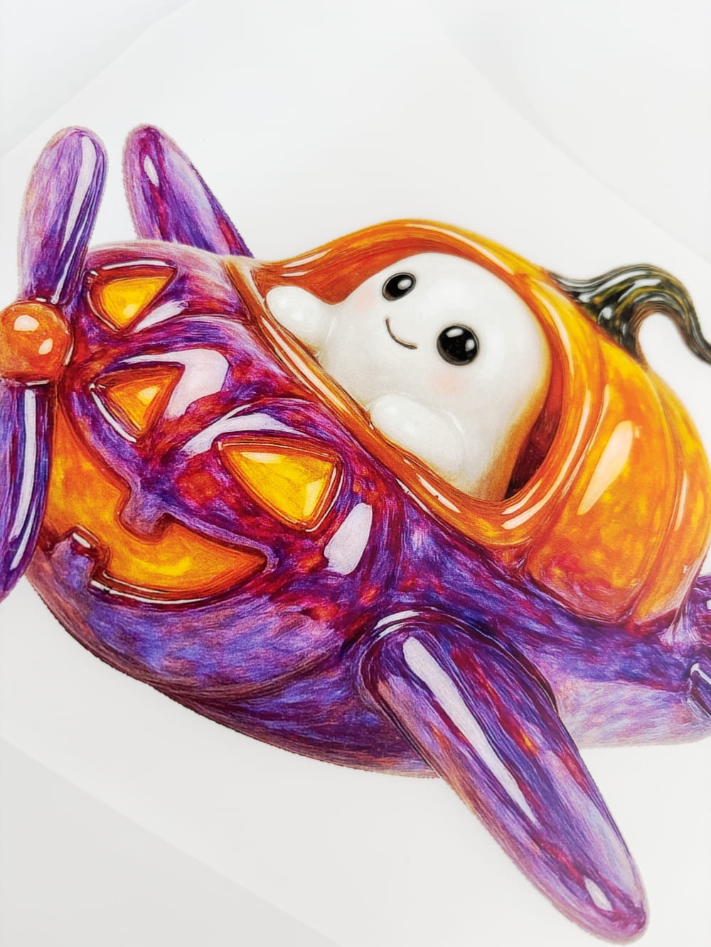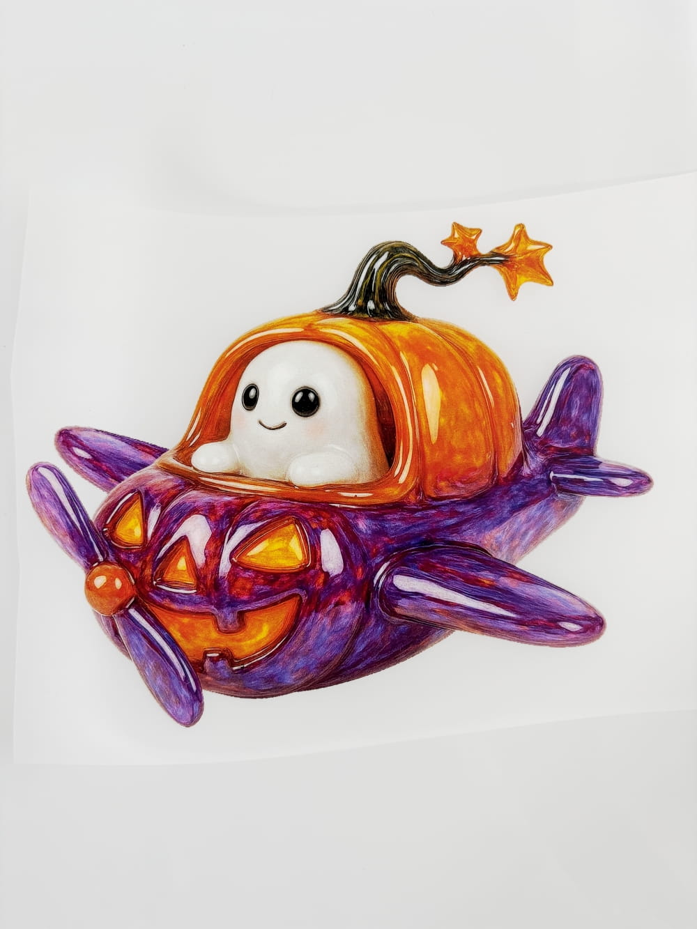 Uroczy duszek w samolocie w kształcie dyni to wyjątkowy motyw, który łączy klimat Halloween z bajkową fantazją.