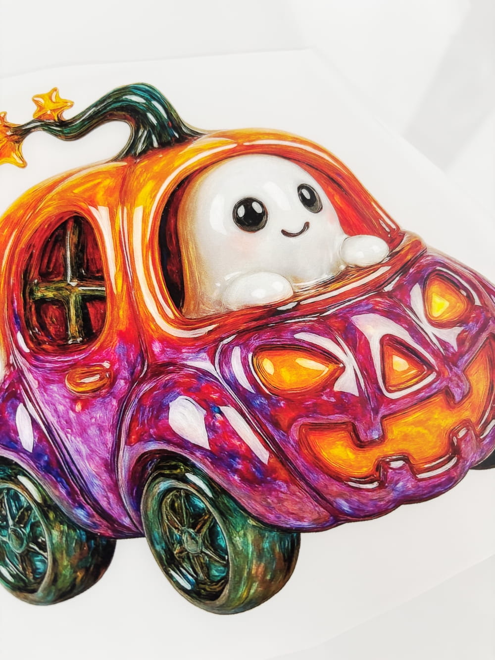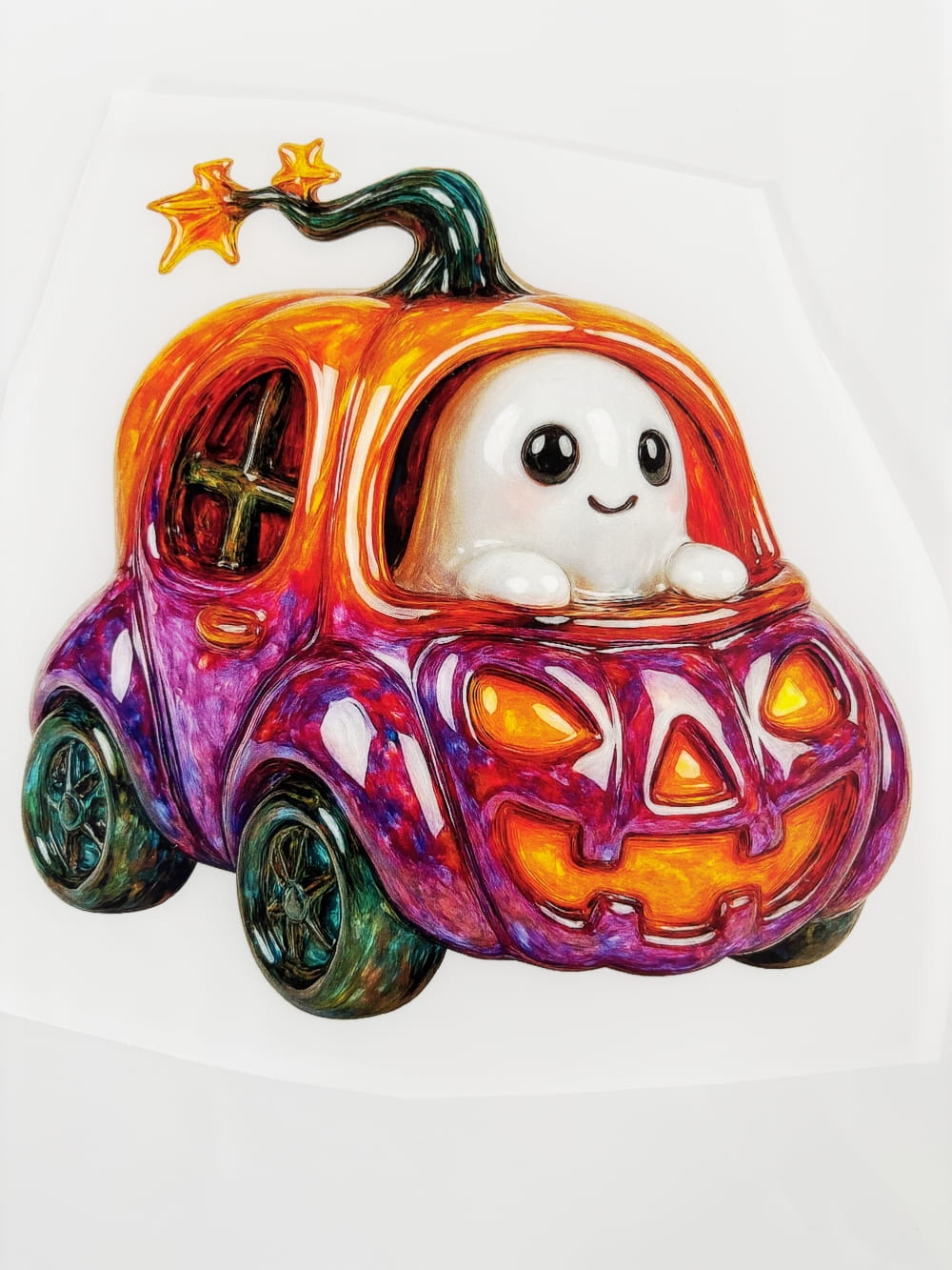 Naprasowanka DTF – Duszek w dyniowym aucie