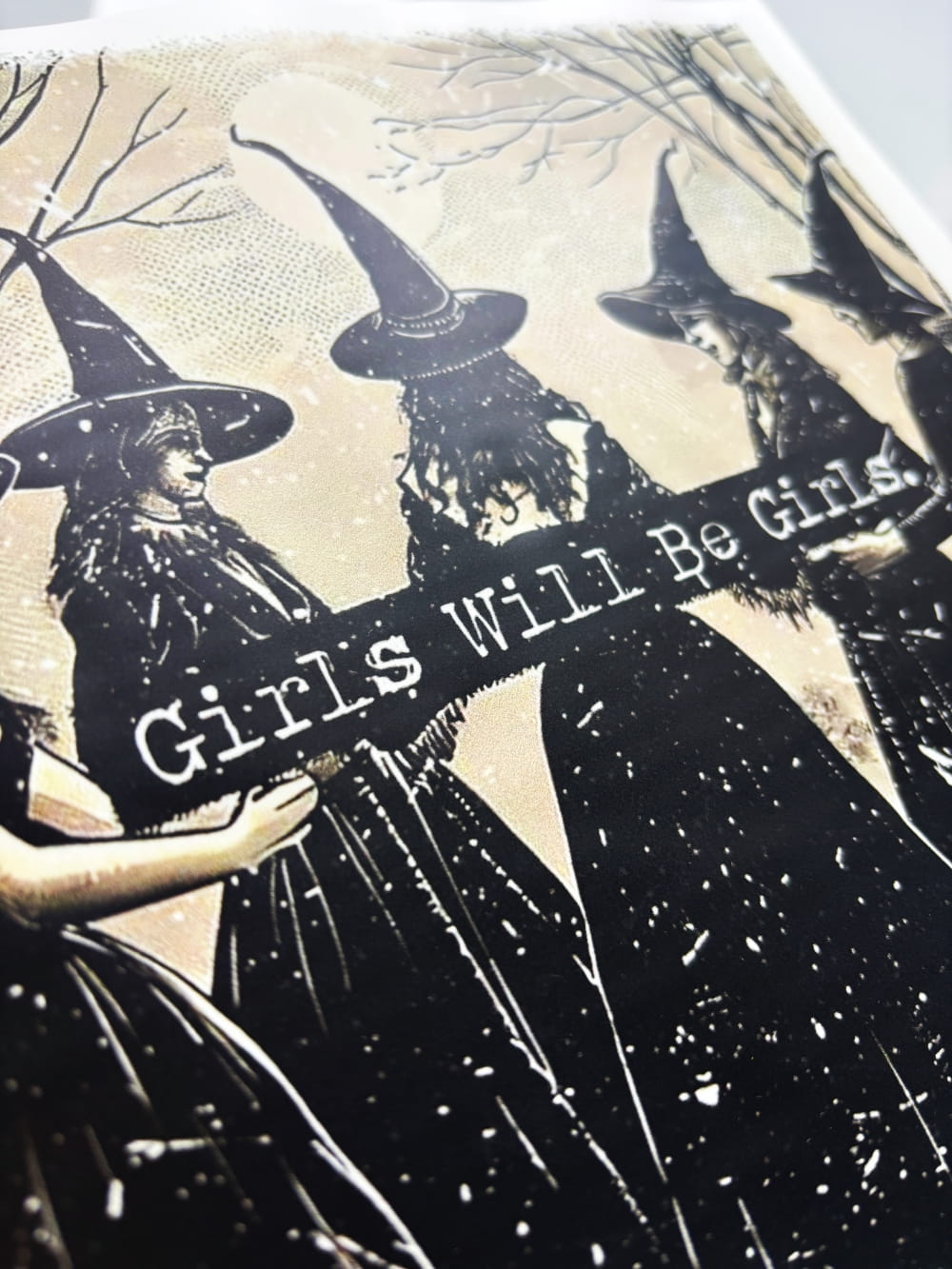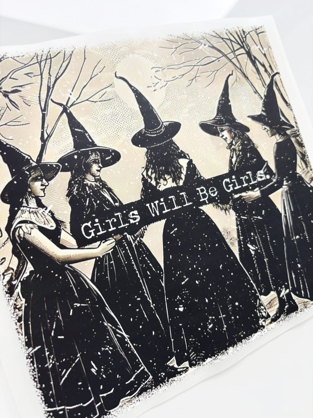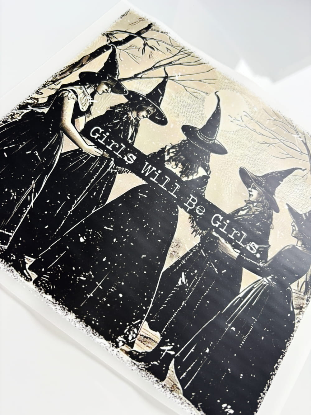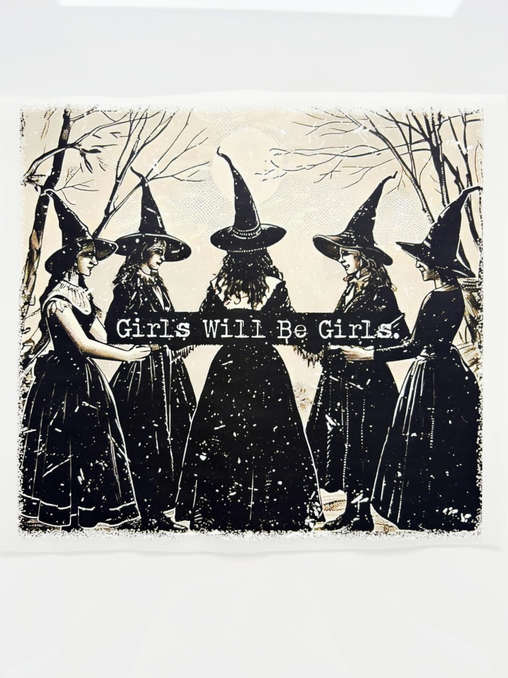 Nadruk, naprasowanka na ubranie - "Girls Will Be Girls - czarownice" 20 x 18 cm