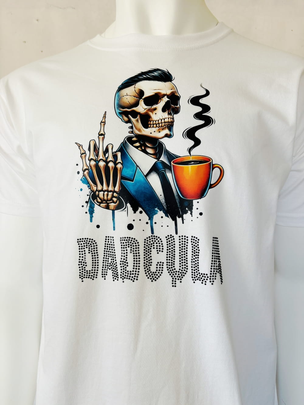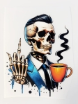 Mamy dla Was kolejną super naprasowankę, która sprawdzi się nie tylko na Halloween, ale też w codziennych stylizacjach jeśli tylko czujecie ten klimat i jesteście fanami takich motywów. Jest to z pozoru normalny elegancki mężczyzna, ale przedstawiony jako kościotrup. Ma zaczesane do tyłu czarne włosy, granatowy garnitur, a swoją kościstą dłonią pokazuje nam środkowy palec. Naprasowanka świetnie podkręci Wasze stylizacje i doda im fajnego charakteru!