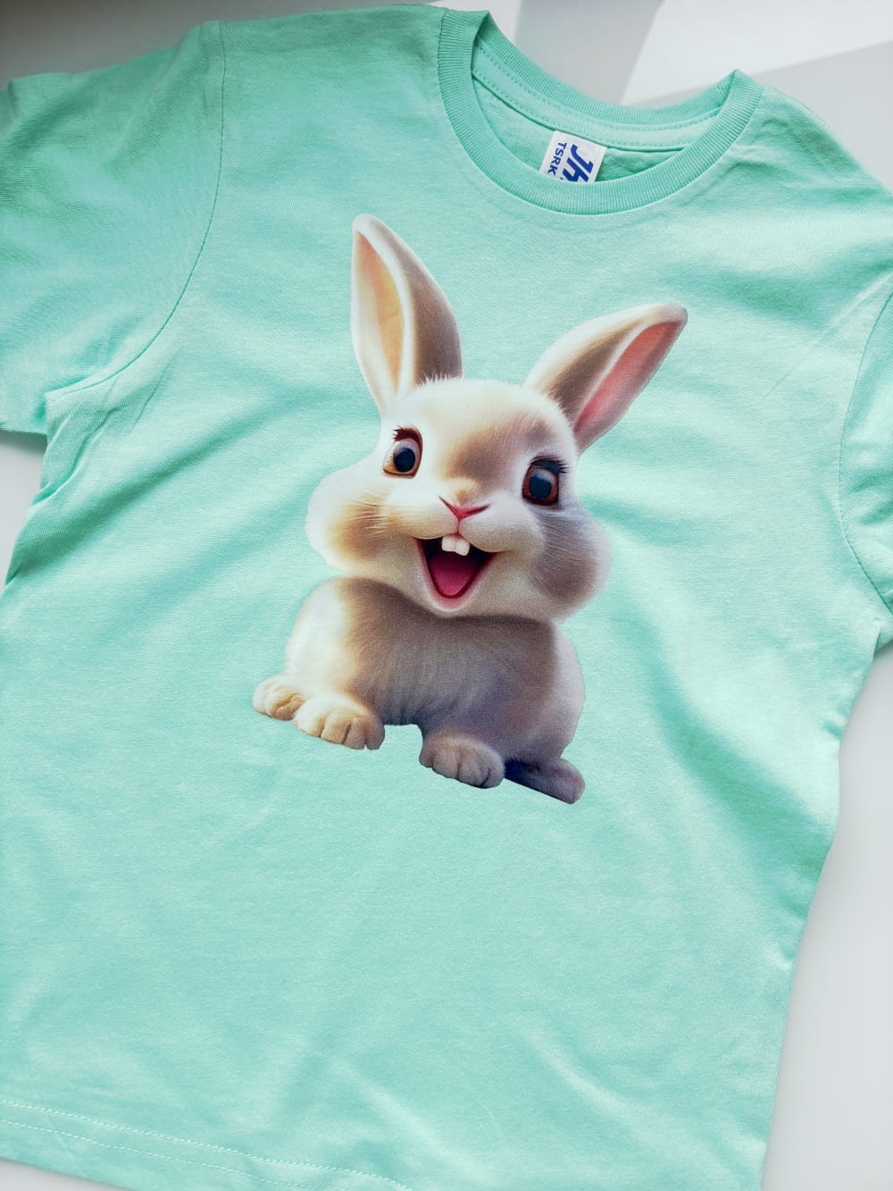 Coś wyjątkowego i słodkiego na ubranie Twojej pociechy? Mamy to! Uroczy, biały króliczek z szerokim uśmiechem i błyszczącymi oczkami to idealny motyw dla małych miłośników zwierzątek i pozytywnej energii. Jego słodki wygląd sprawi, że koszulka Twojego dziecka stanie się jeszcze bardziej wyjątkowa!