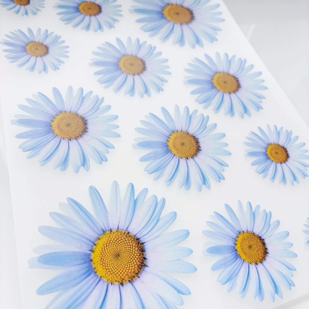 Nadruki , naprasowanki na ubranie - Zestaw kwiatów " Błękitne stokrotki"