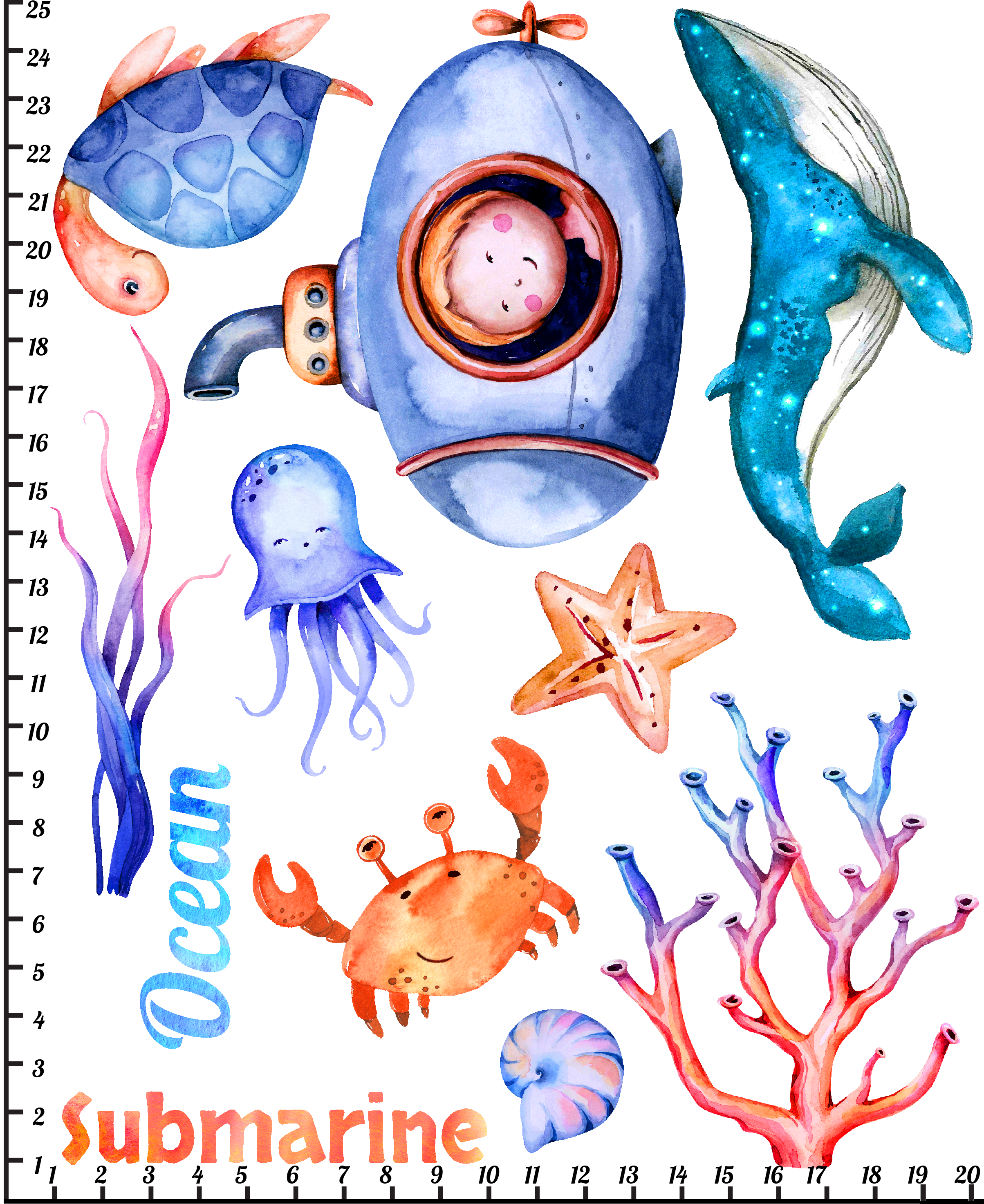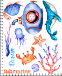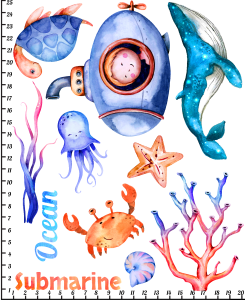 Nadruki dziecięce, naprasowanka na ubranie - Zestaw morze Submarine