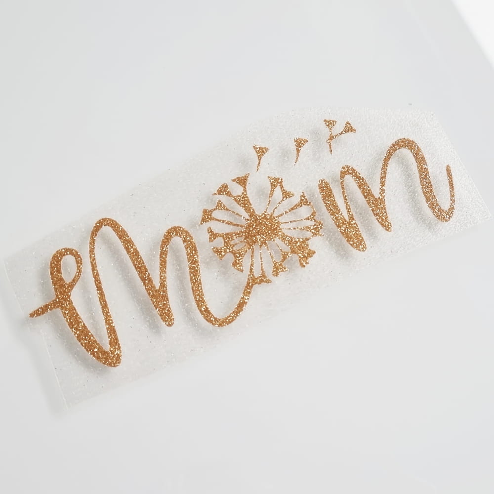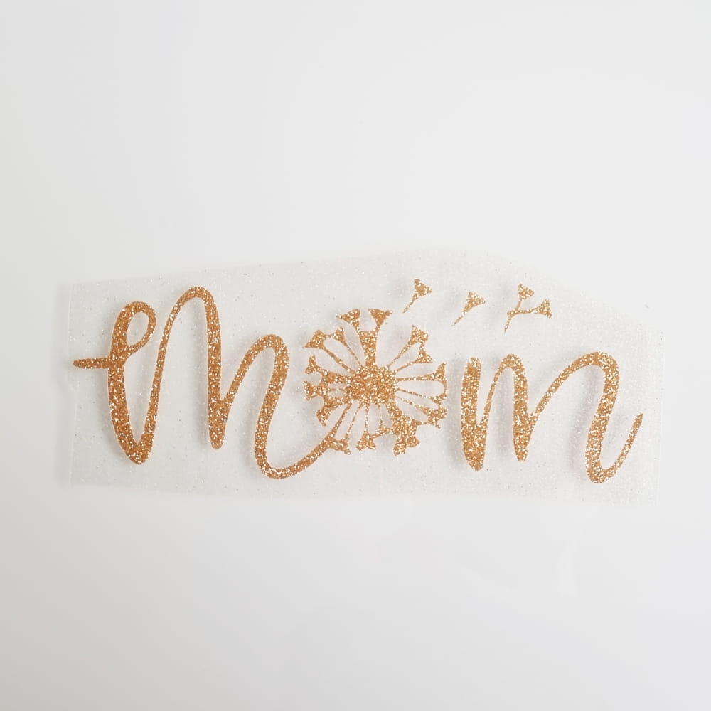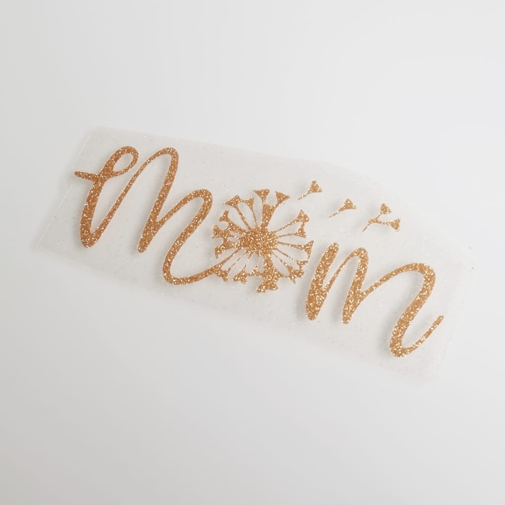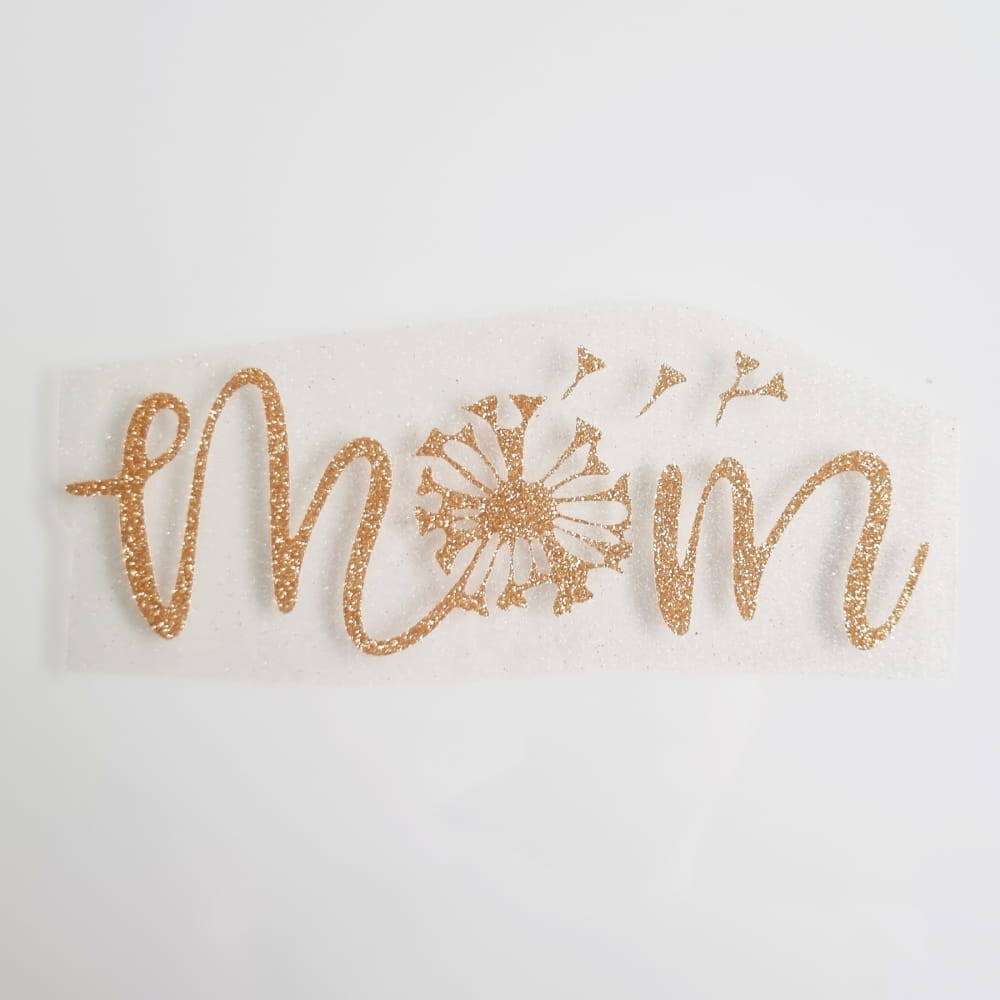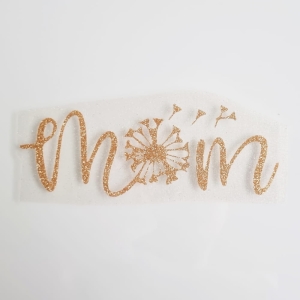 Delikatny napis mama w języku angielskim, w bardziej nostalgicznej odsłonie, gdzie zamiast typowego O, mamy dmuchawca. Napis został wykonany ze złotej, brokatowej folii, która przepięknie mieni się w świetle. Jest to idealny wzór dla każdej mamy - napis jest ponadczasowy, pasuje zarówno dla młodych jak i starszych kobiet. Możecie go nakleić na sukienki, t-shirty czy marynarki, z pewnością rozświetli każdą stylizację.