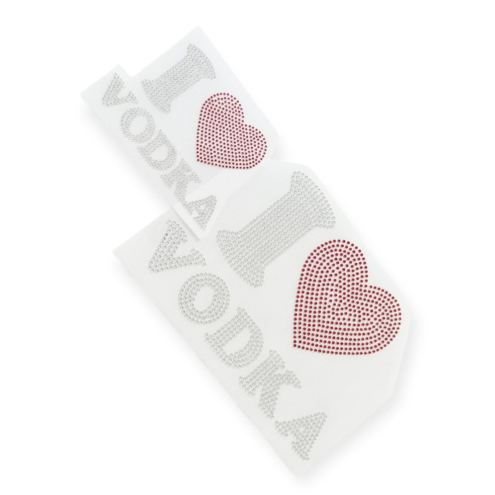 Naprasowanka na odzież z cyrkoniami - I love Vodka MAŁA 14,2 x 9,4 cm