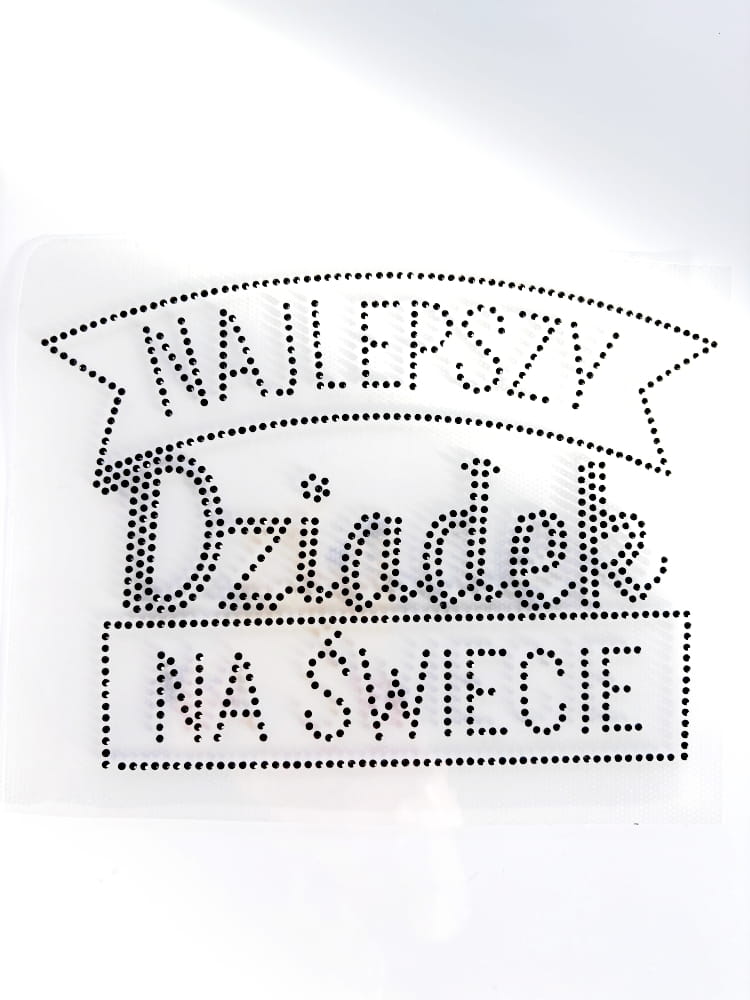 Naprasowanka na odzież z czarnymi kryształkami - "Najlepszy Dziadek na świecie" 18 x 13 cm