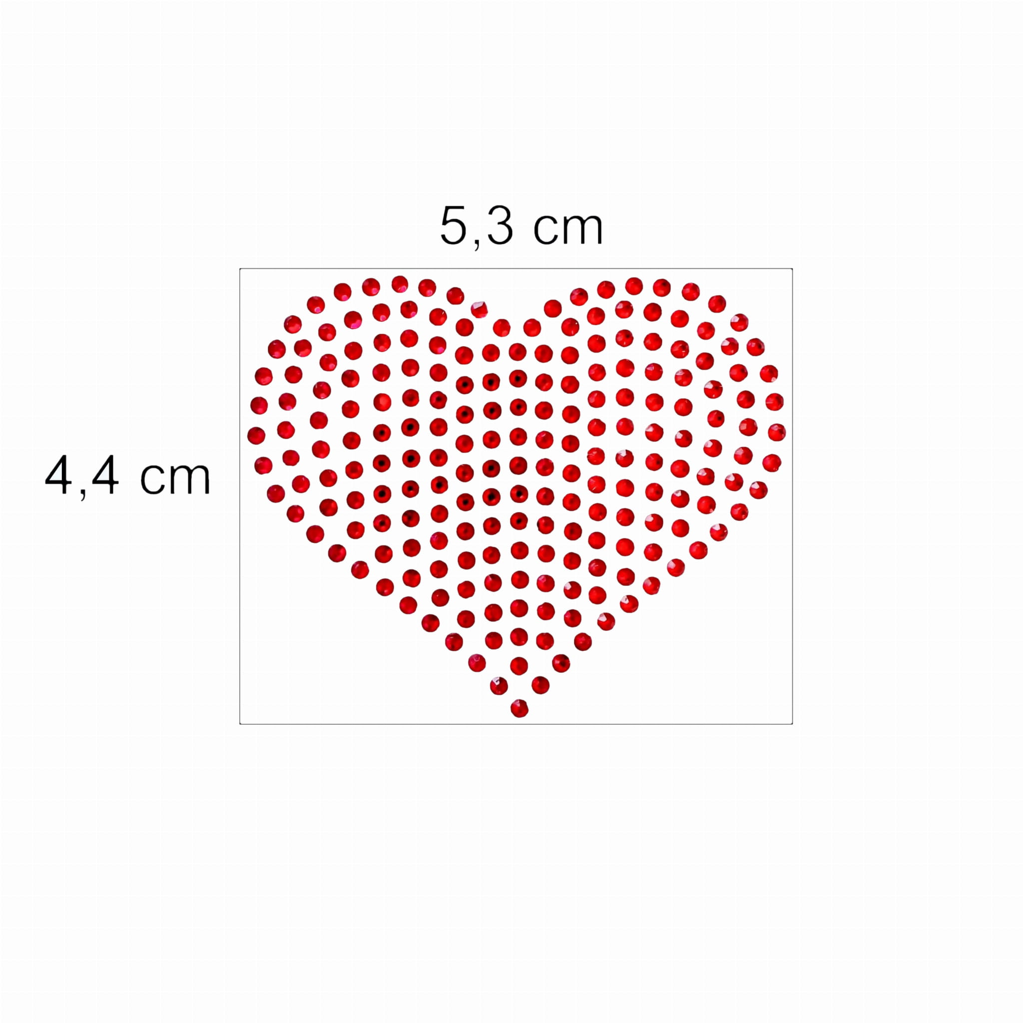 Naprasowanka na odzież z czerwonymi cyrkoniami - Serce 5,3 x 4,4 cm