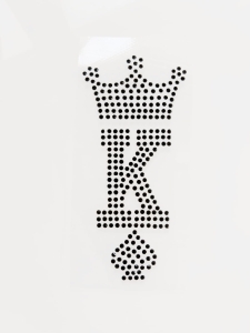Chcesz idealnie dopasować się ze swoją drugą połówką? A może chcesz poczuć się wyjątkowo i nosić na piersi ten oryginalny znak? Mamy dla Ciebie naprasowankę wykonaną z czarnych kryształków, przedstawiającą Króla pik. Motyw litery "K" z koroną i symbolem karo to doskonały wybór dla osób ceniących oryginalność i królewski styl.