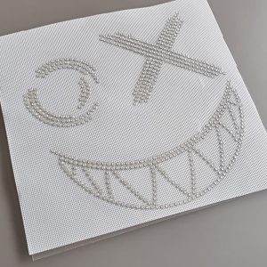 Duży, błyszczący motyw ozdobny ułożony z krystalicznych, srebrnych cyrkonii ( w naszym sklepie znajdziecie również identyczny motyw ułożony z blaszek stożkowych metalowych). Nasz wzorek to idealny sposób na szybkie ozdobienie bluz, koszulek, czapek lub innych elementów odzieży. Możecie go śmiało przykleić w całości albo pociąć na kawałki i przykleić go w częściach. Jak? Chociażby oczy przykleić na t-shirt a usta na spodnie - czemu nie? Tak ozdobione ubrania w całości będą tworzyć bardzo ciekawy i oryginalny komplet. Oczywiście nasz wzorek można również nakleić na przód bluzy bez żadnego rozcinania i kombinacji z wklejaniem - wtedy otrzymacie dokładnie taki wzór jak na naszych zdjęciach.