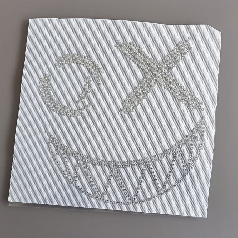 Naprasowanka na odzież z przezroczystymi cyrkoniami- Uśmiech zombi 17,8 x 18,3